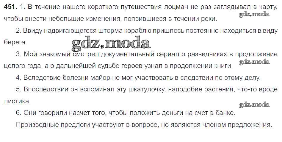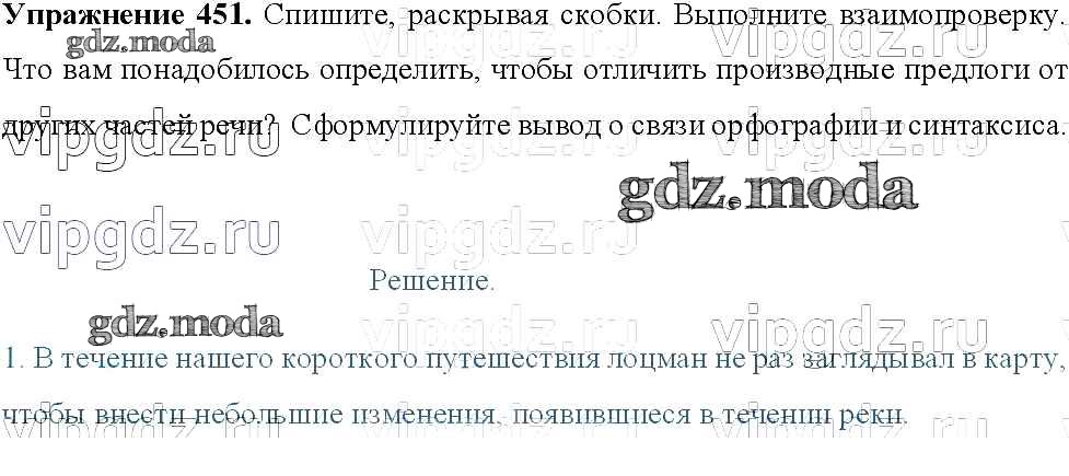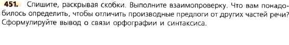 ОТВЕТ на задание № 451 Учебник по Русскому языку 8 класс Тростенцова