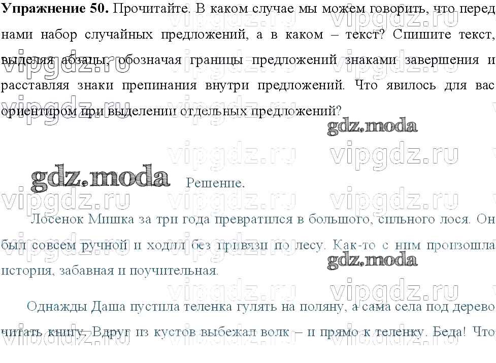 ОТВЕТ на задание № 50 Учебник по Русскому языку 8 класс Тростенцова
