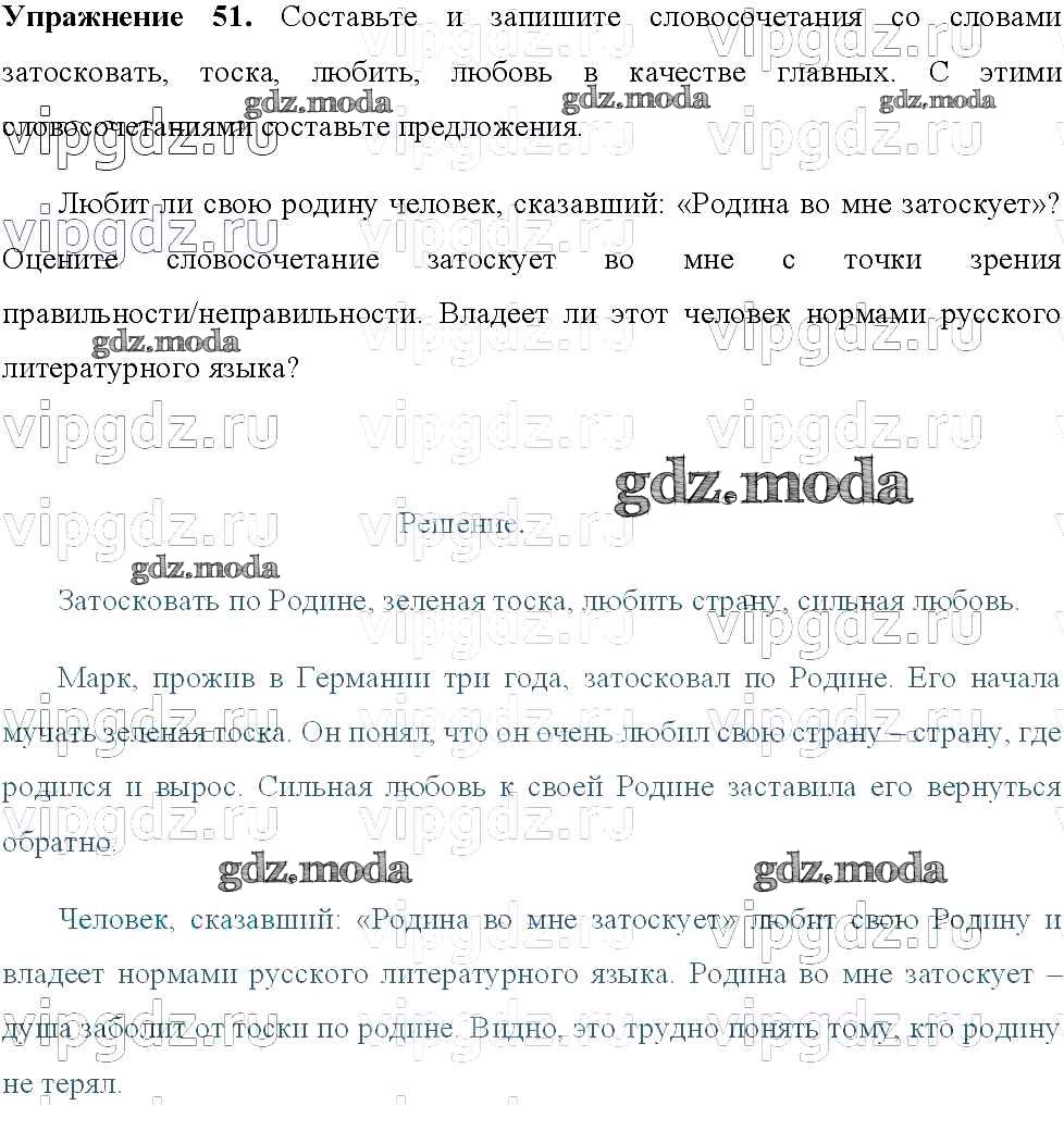 ОТВЕТ на задание № 51 Учебник по Русскому языку 8 класс Тростенцова