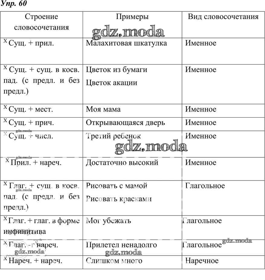 ОТВЕТ на задание № 60 Учебник по Русскому языку 8 класс Тростенцова