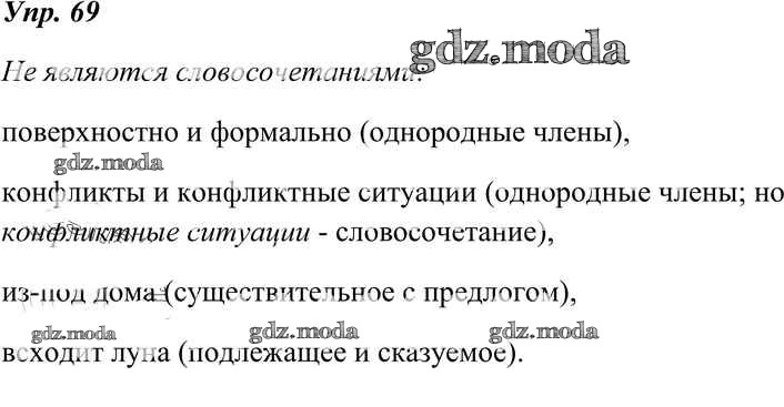 ОТВЕТ на задание № 69 Учебник по Русскому языку 8 класс Тростенцова