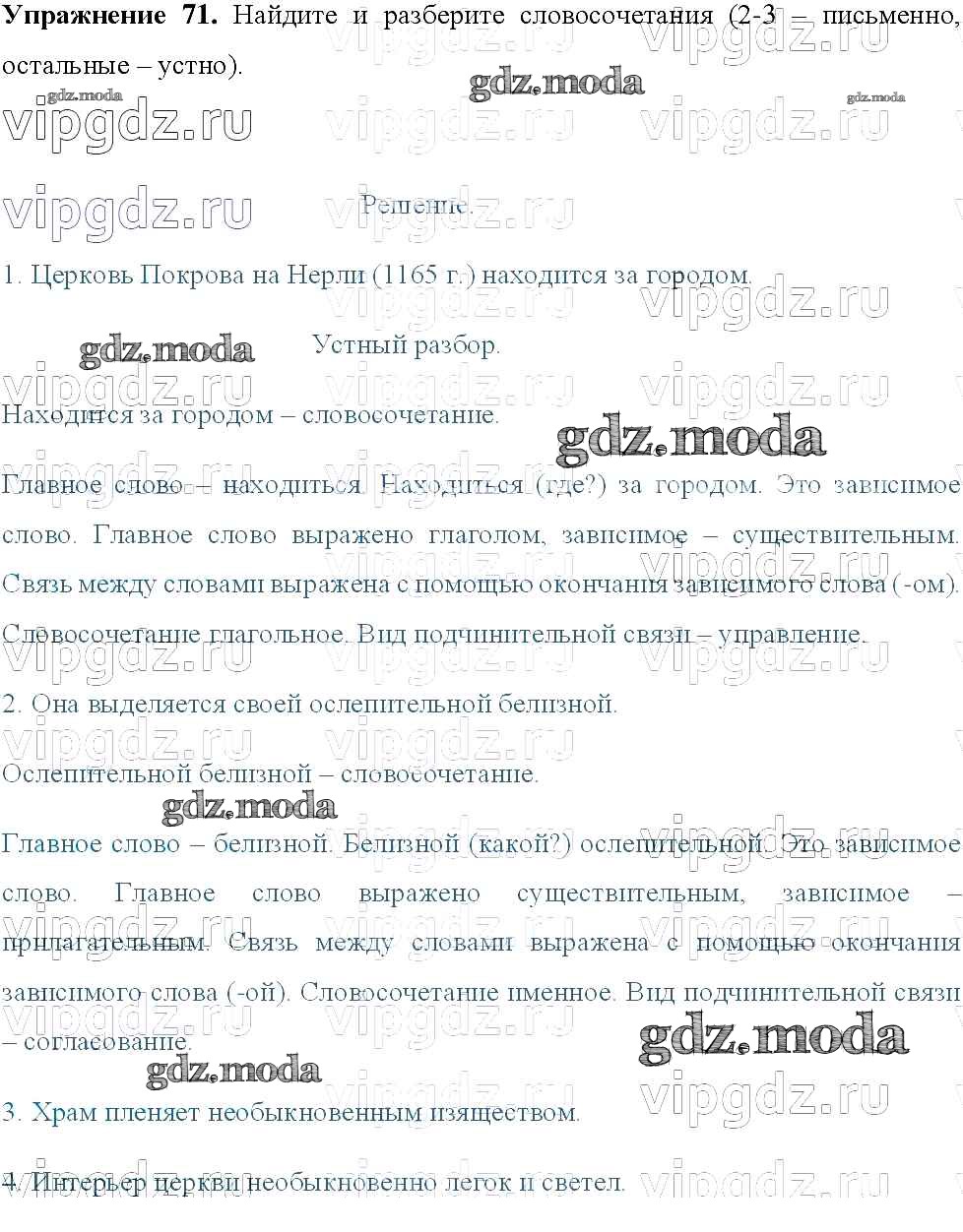 ОТВЕТ на задание № 71 Учебник по Русскому языку 8 класс Тростенцова