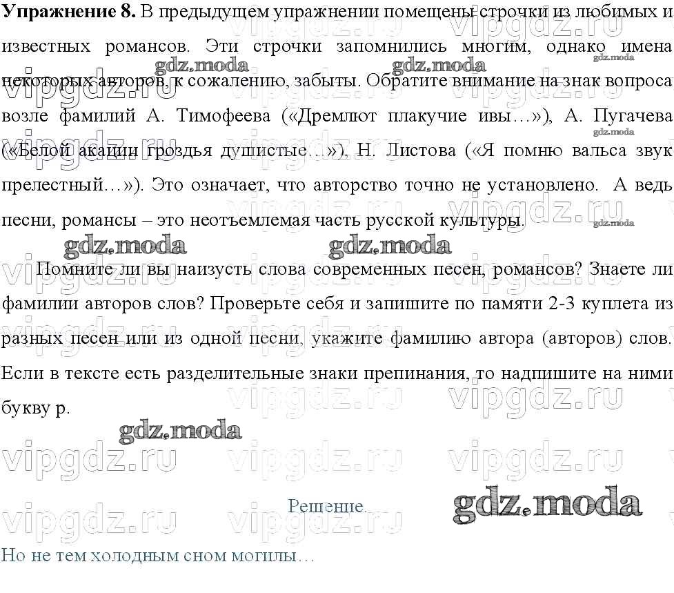 ОТВЕТ на задание № 8 Учебник по Русскому языку 8 класс Тростенцова