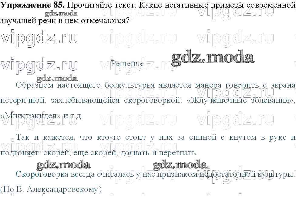 ОТВЕТ на задание № 85 Учебник по Русскому языку 8 класс Тростенцова
