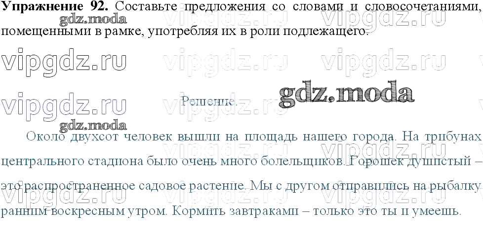 ОТВЕТ на задание № 92 Учебник по Русскому языку 8 класс Тростенцова