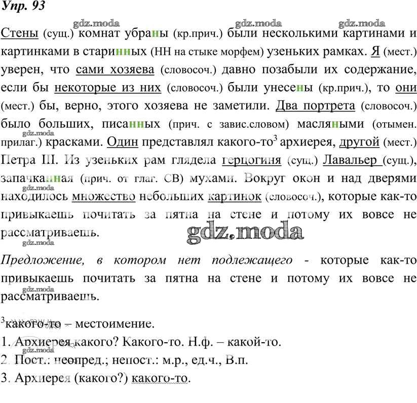 ОТВЕТ на задание № 93 Учебник по Русскому языку 8 класс Тростенцова