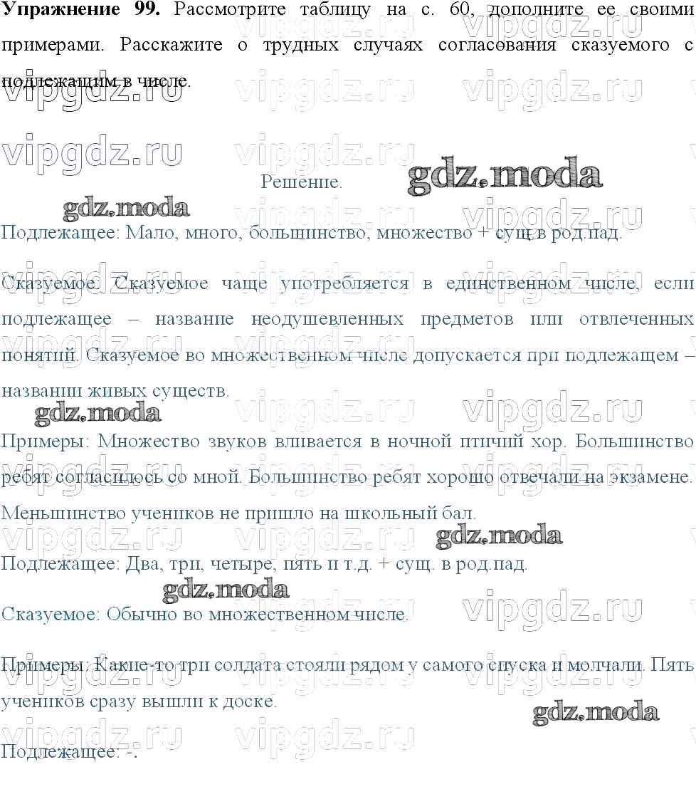 ОТВЕТ на задание № 99 Учебник по Русскому языку 8 класс Тростенцова