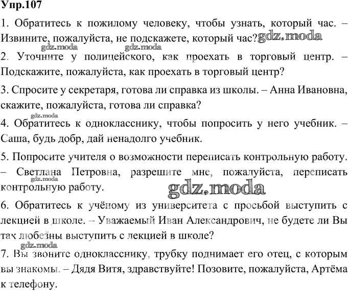 ГДЗ решение к заданию № 107 Русский родной язык 8 класс Александрова О.М. Просвещение 2020 ФГОС бесплатно на гдз.мода!
