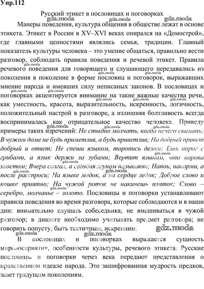 ГДЗ решение к заданию № 112 Русский родной язык 8 класс Александрова О.М. Просвещение 2020 ФГОС бесплатно на гдз.мода!
