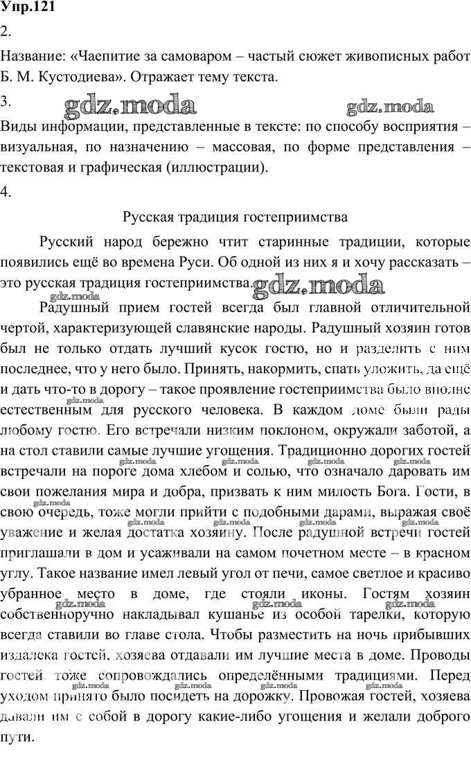 ГДЗ решение к заданию № 121 Русский родной язык 8 класс Александрова О.М. Просвещение 2020 ФГОС бесплатно на гдз.мода!