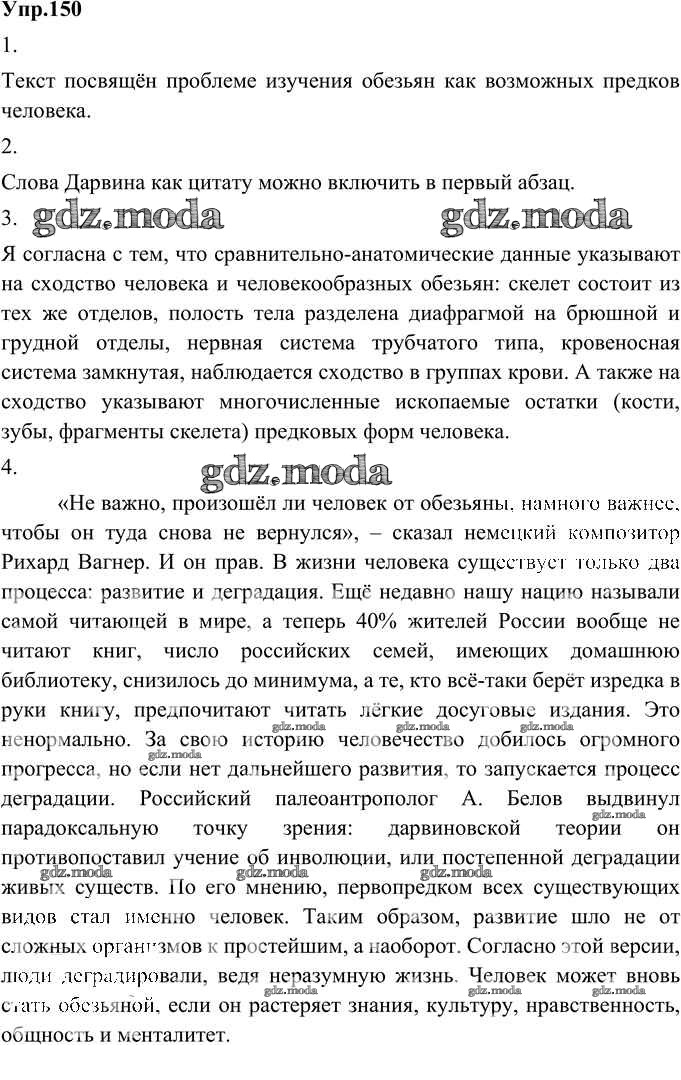 ОТВЕТ на задание № 150 Учебник по Русскому языку 8 класс Александрова