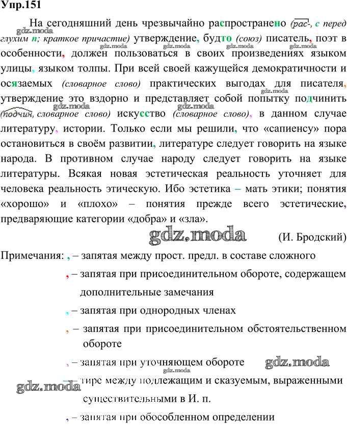ОТВЕТ на задание № 151 Учебник по Русскому языку 8 класс Александрова