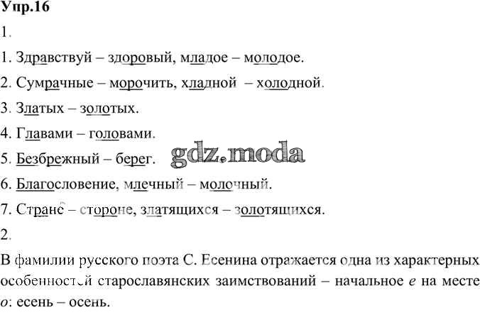 ГДЗ решение к заданию № 16 Русский родной язык 8 класс Александрова О.М. Просвещение 2020 ФГОС бесплатно на гдз.мода!