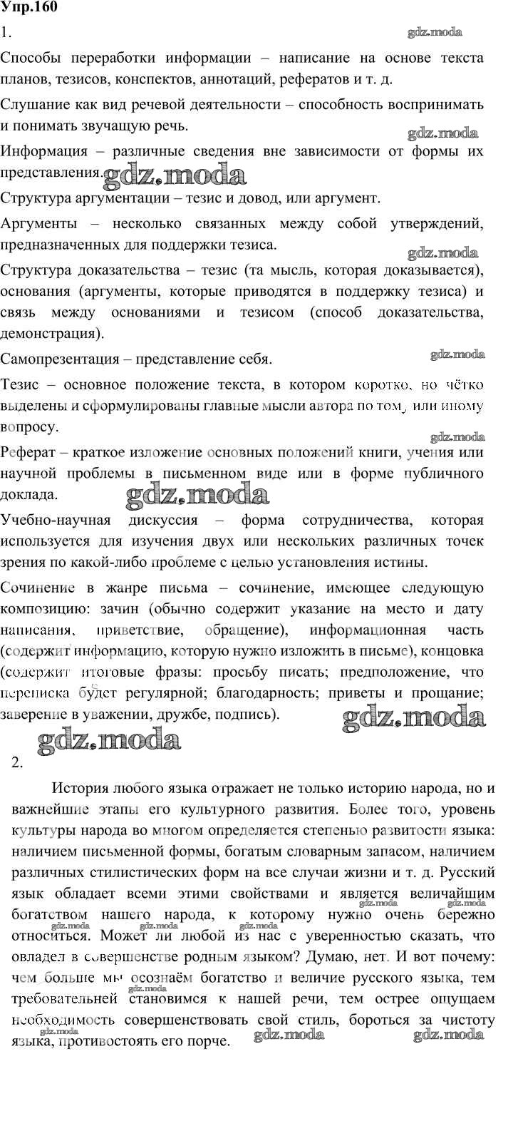 ГДЗ решение к заданию № 160 Русский родной язык 8 класс Александрова О.М. Просвещение 2020 ФГОС бесплатно на гдз.мода!