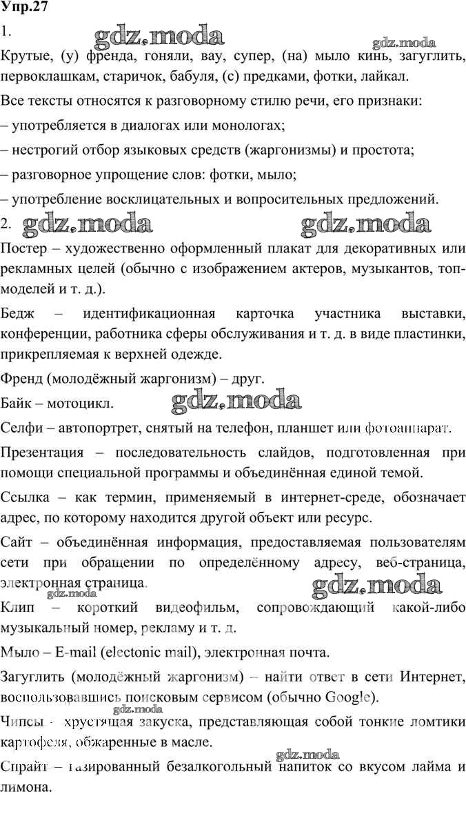 ГДЗ решение к заданию № 27 Русский родной язык 8 класс Александрова О.М. Просвещение 2020 ФГОС бесплатно на гдз.мода!