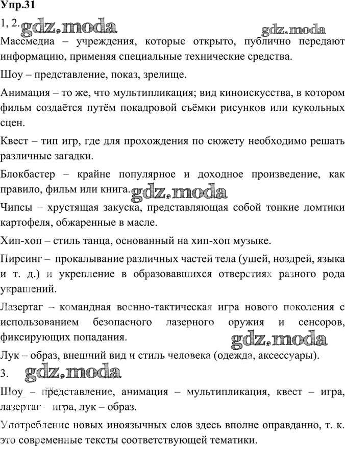 ГДЗ решение к заданию № 31 Русский родной язык 8 класс Александрова О.М. Просвещение 2020 ФГОС бесплатно на гдз.мода!