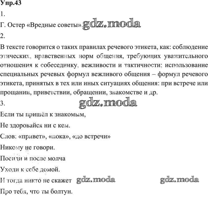 ГДЗ решение к заданию № 43 Русский родной язык 8 класс Александрова О.М. Просвещение 2020 ФГОС бесплатно на гдз.мода!