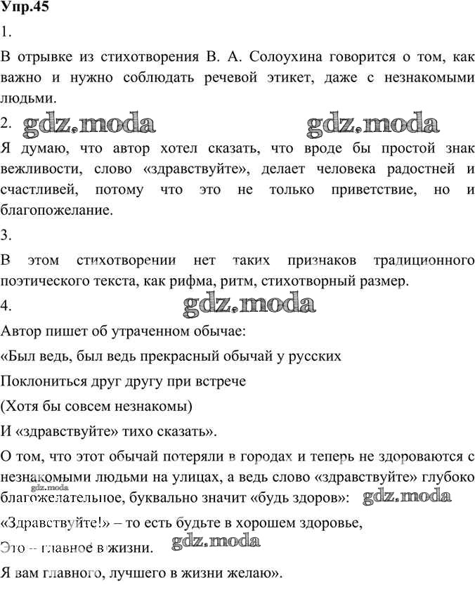 ГДЗ решение к заданию № 45 Русский родной язык 8 класс Александрова О.М. Просвещение 2020 ФГОС бесплатно на гдз.мода!