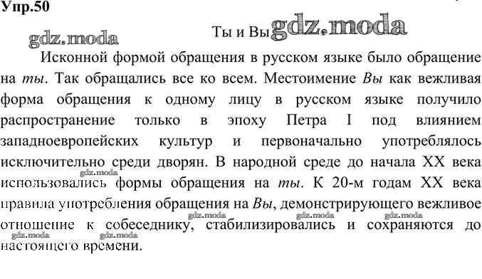 ГДЗ решение к заданию № 50 Русский родной язык 8 класс Александрова О.М. Просвещение 2020 ФГОС бесплатно на гдз.мода!