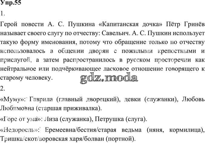 ГДЗ решение к заданию № 55 Русский родной язык 8 класс Александрова О.М. Просвещение 2020 ФГОС бесплатно на гдз.мода!
