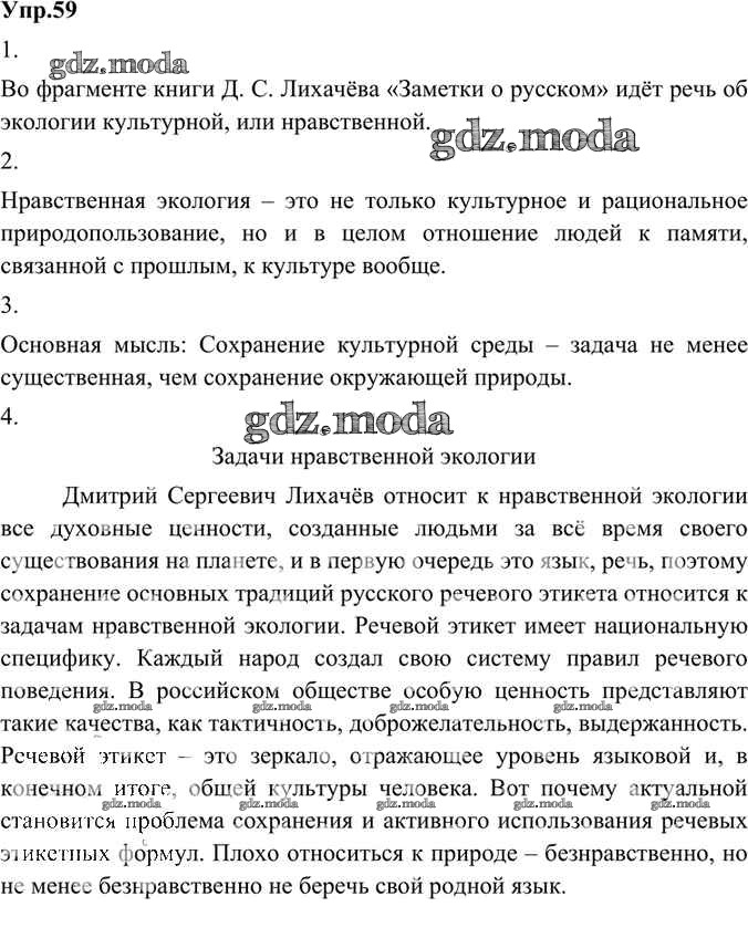 ГДЗ решение к заданию № 59 Русский родной язык 8 класс Александрова О.М. Просвещение 2020 ФГОС бесплатно на гдз.мода!