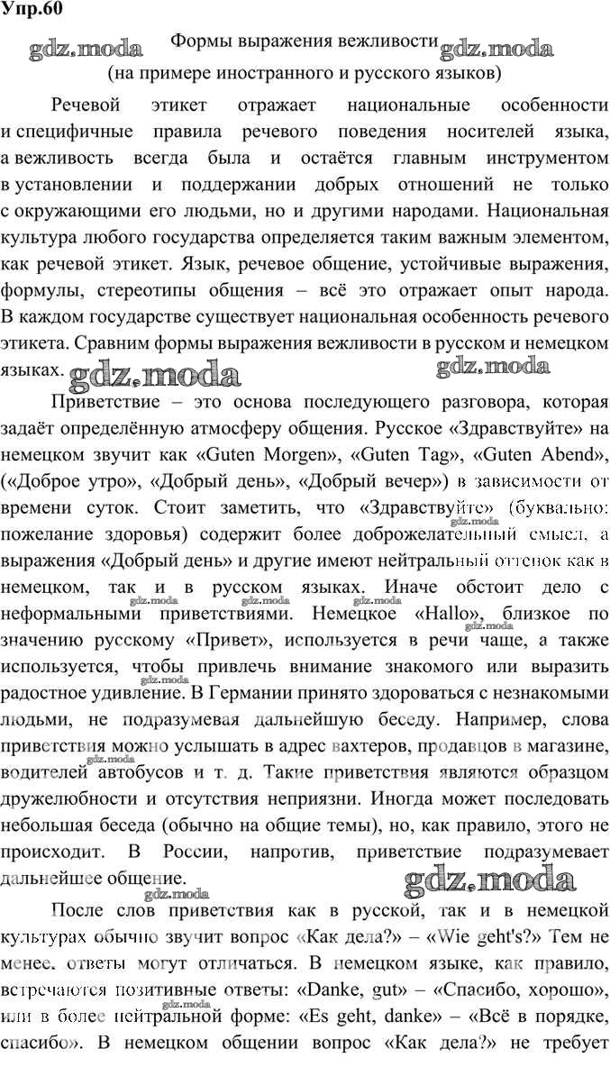 ГДЗ решение к заданию № 60 Русский родной язык 8 класс Александрова О.М. Просвещение 2020 ФГОС бесплатно на гдз.мода!