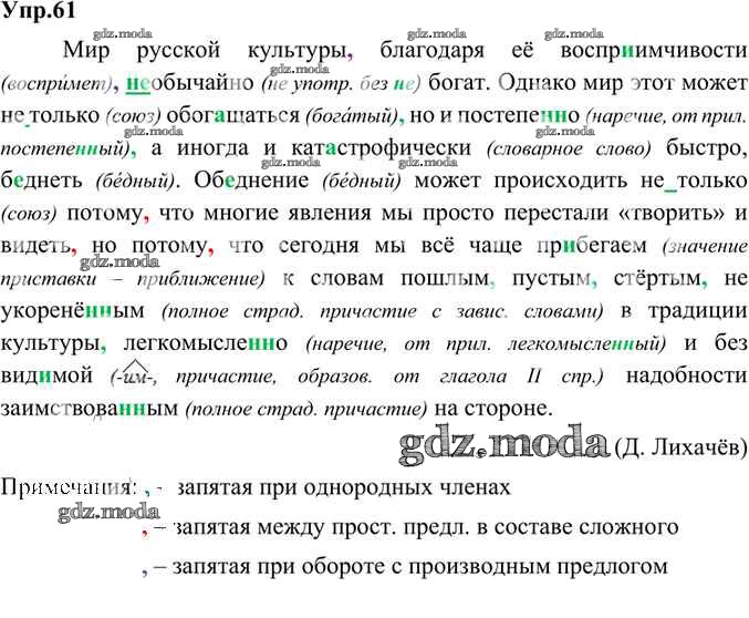 ОТВЕТ на задание № 61 Учебник по Русскому языку 8 класс Александрова