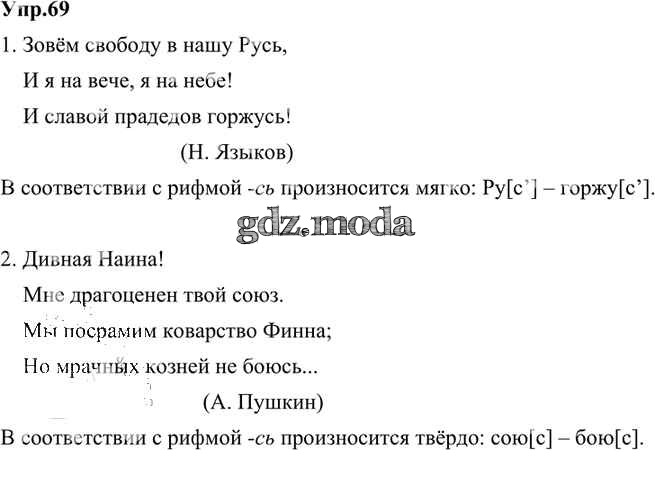 ГДЗ решение к заданию № 69 Русский родной язык 8 класс Александрова О.М. Просвещение 2020 ФГОС бесплатно на гдз.мода!