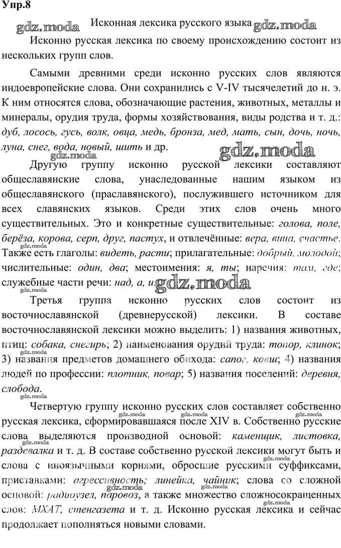 ГДЗ решение к заданию № 8 Русский родной язык 8 класс Александрова О.М. Просвещение 2020 ФГОС бесплатно на гдз.мода!