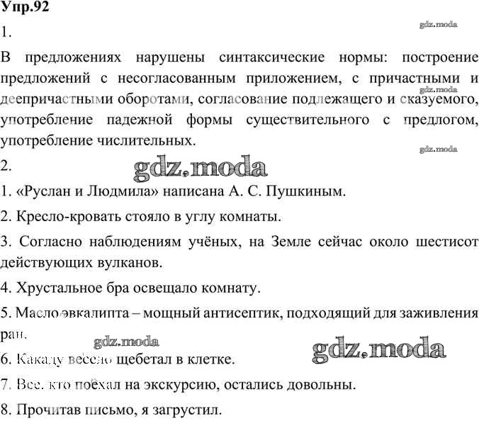 ОТВЕТ на задание № 92 Учебник по Русскому языку 8 класс Александрова