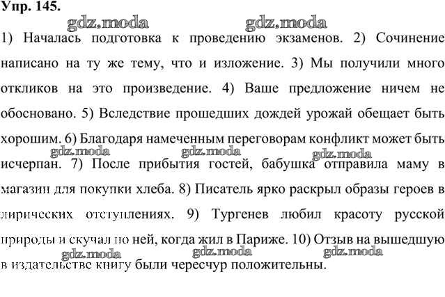 ОТВЕТ на задание № 145 Учебник по Русскому языку 8 класс Быстрова Инновационная школа