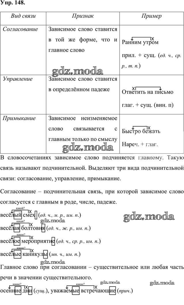 ГДЗ решение к заданию № 148 Русский язык 8 класс Быстрова Е.А. Русское слово 2019 Часть 1, Часть 2 ФГОС бесплатно на гдз.мода!