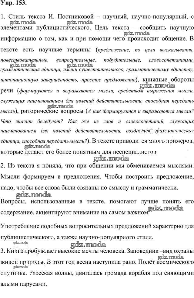 ОТВЕТ на задание № 153 Учебник по Русскому языку 8 класс Быстрова Инновационная школа
