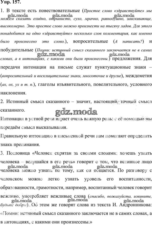 ОТВЕТ на задание № 157 Учебник по Русскому языку 8 класс Быстрова Инновационная школа