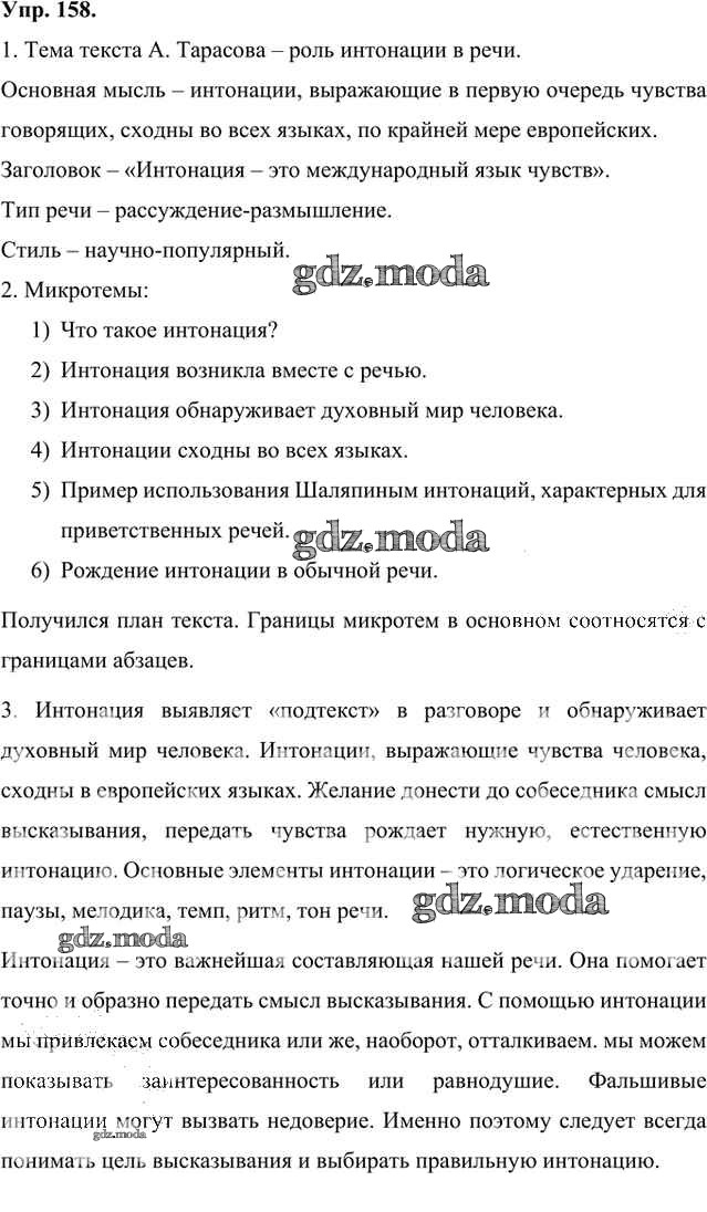 ОТВЕТ на задание № 158 Учебник по Русскому языку 8 класс Быстрова Инновационная школа