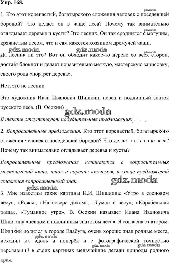 ГДЗ решение к заданию № 168 Русский язык 8 класс Быстрова Е.А. Русское слово 2019 Часть 1, Часть 2 ФГОС бесплатно на гдз.мода!