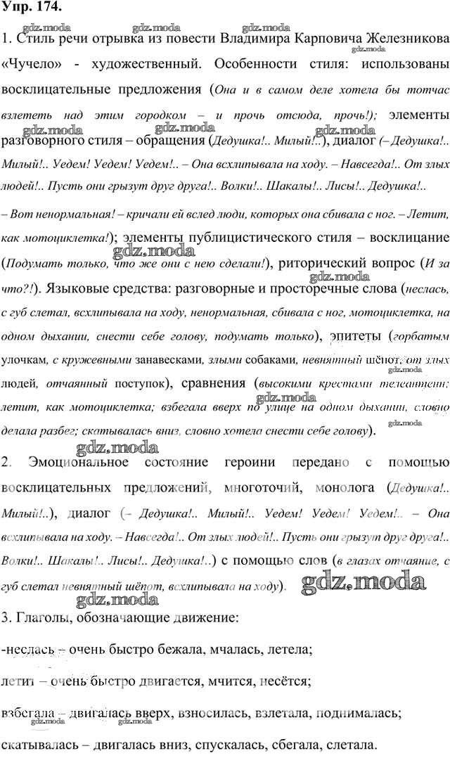 ОТВЕТ на задание № 174 Учебник по Русскому языку 8 класс Быстрова Инновационная школа