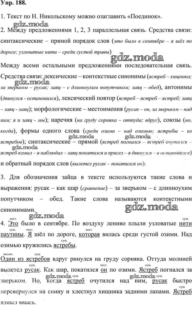 ГДЗ решение к заданию № 188 Русский язык 8 класс Быстрова Е.А. Русское слово 2019 Часть 1, Часть 2 ФГОС бесплатно на гдз.мода!