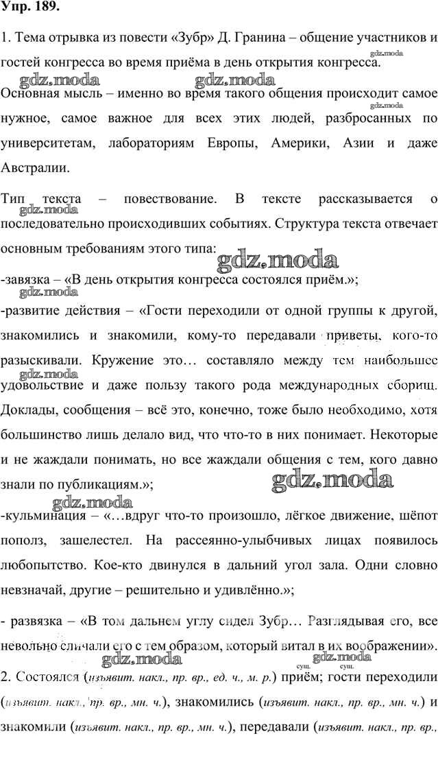 ОТВЕТ на задание № 189 Учебник по Русскому языку 8 класс Быстрова Инновационная школа