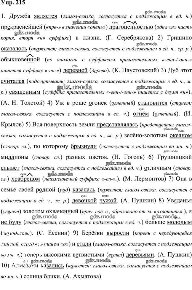 ОТВЕТ на задание № 215 Учебник по Русскому языку 8 класс Быстрова Инновационная школа