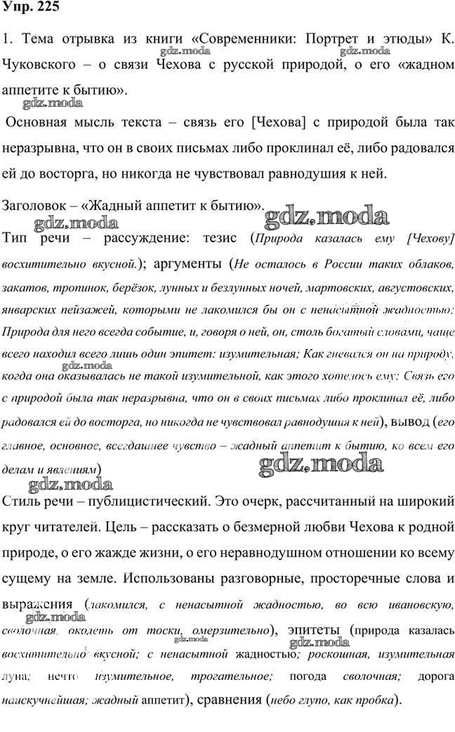 ОТВЕТ на задание № 225 Учебник по Русскому языку 8 класс Быстрова Инновационная школа