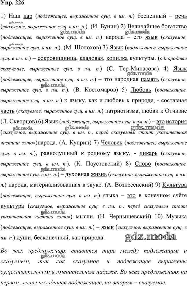 ОТВЕТ на задание № 226 Учебник по Русскому языку 8 класс Быстрова Инновационная школа