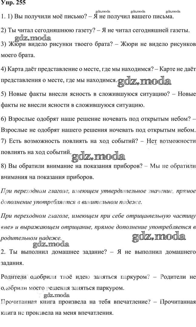 ОТВЕТ на задание № 255 Учебник по Русскому языку 8 класс Быстрова Инновационная школа