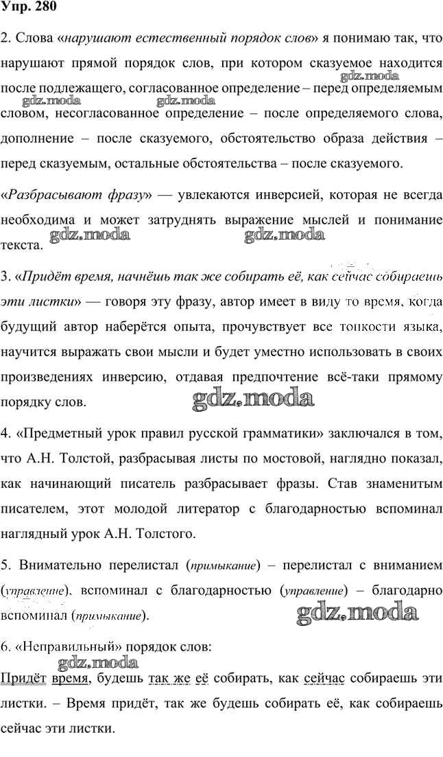 ОТВЕТ на задание № 280 Учебник по Русскому языку 8 класс Быстрова Инновационная школа