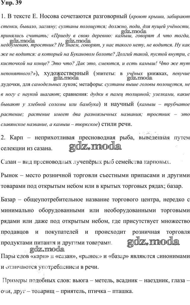 ГДЗ решение к заданию № 39 Русский язык 8 класс Быстрова Е.А. Русское слово 2019 Часть 1, Часть 2 ФГОС бесплатно на гдз.мода!