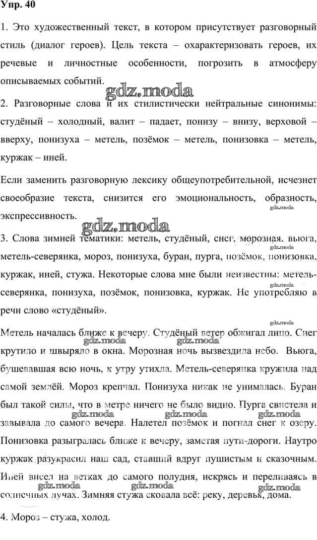 ОТВЕТ на задание № 40 Учебник по Русскому языку 8 класс Быстрова Инновационная школа