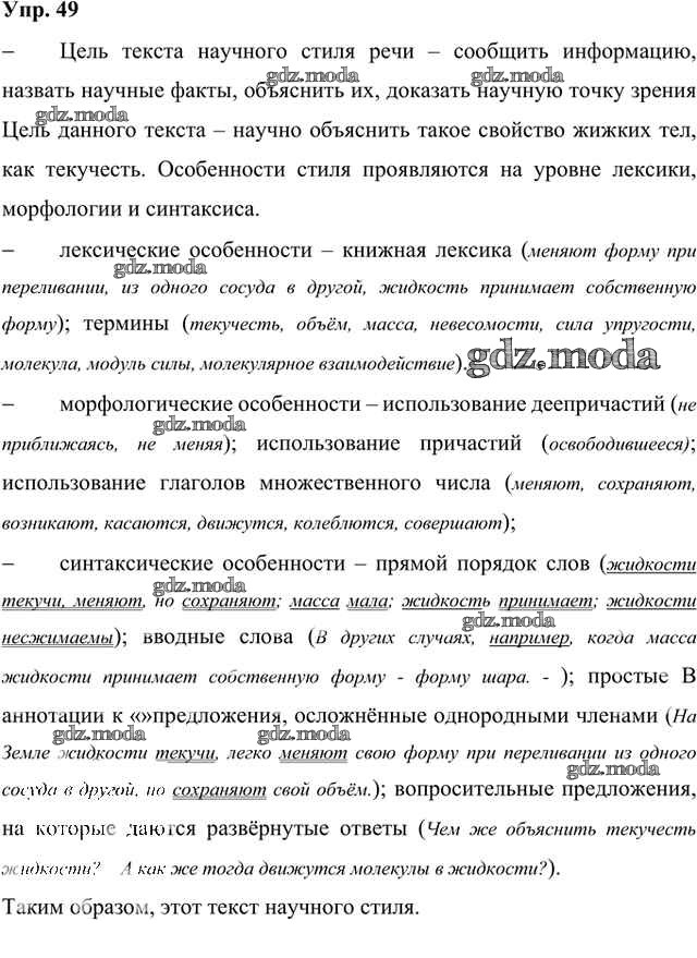 ОТВЕТ на задание № 49 Учебник по Русскому языку 8 класс Быстрова Инновационная школа