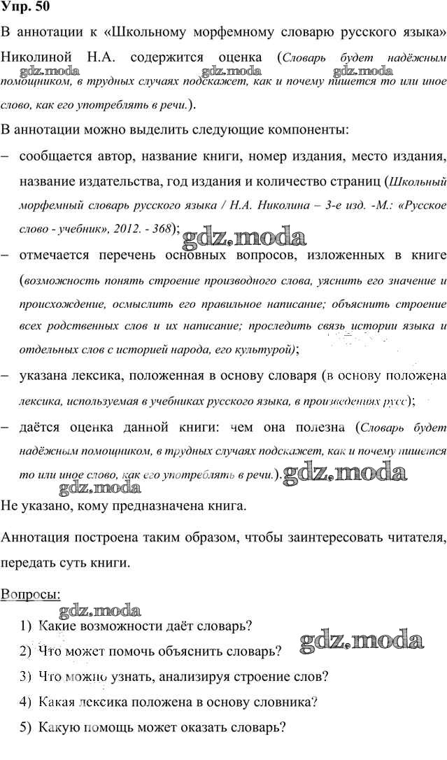 ОТВЕТ на задание № 50 Учебник по Русскому языку 8 класс Быстрова Инновационная школа