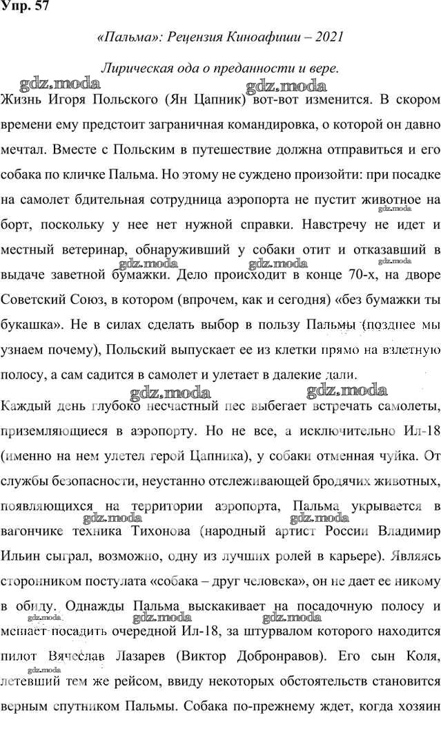 ОТВЕТ на задание № 57 Учебник по Русскому языку 8 класс Быстрова Инновационная школа