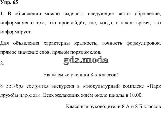 ГДЗ решение к заданию № 65 Русский язык 8 класс Быстрова Е.А. Русское слово 2019 Часть 1, Часть 2 ФГОС бесплатно на гдз.мода!